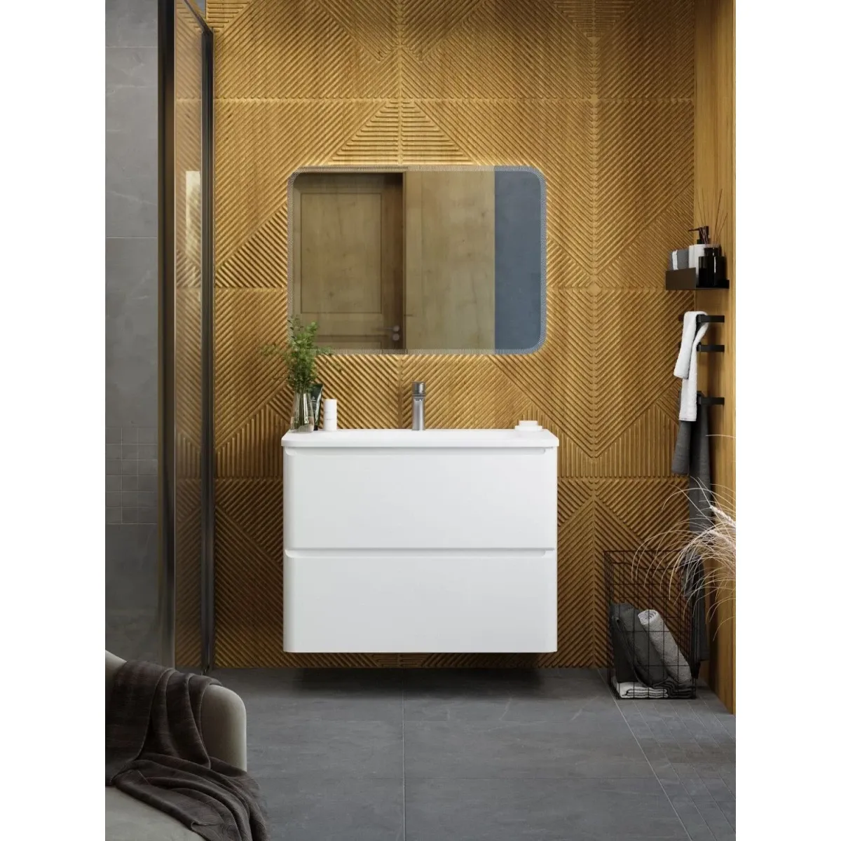 SANREMO База под раковину подвесная, с двумя ящиками, Белый глянец AM-Sanremo-800-2C-SO-BL