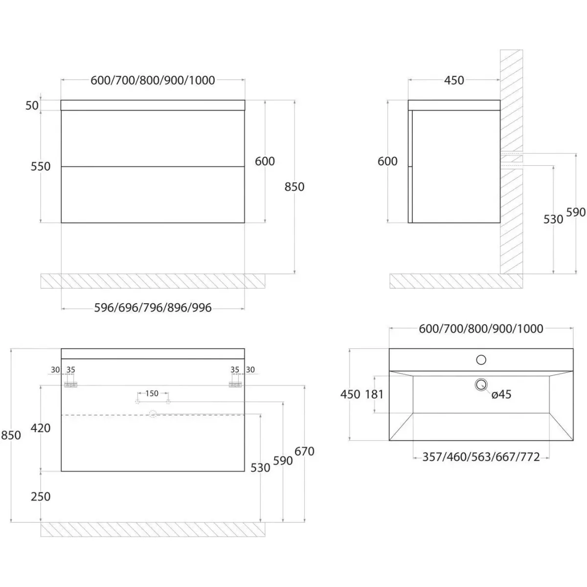 TORINO База под раковину подвесная с двумя выкатными ящиками, Палом AM-TORINO-900-2C-SO-PA-P