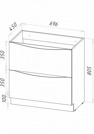 Дополнительная информация: база оснащена доводчиками, ручки скрыты в плоскости фасада, раковина сифоном не комплектуется