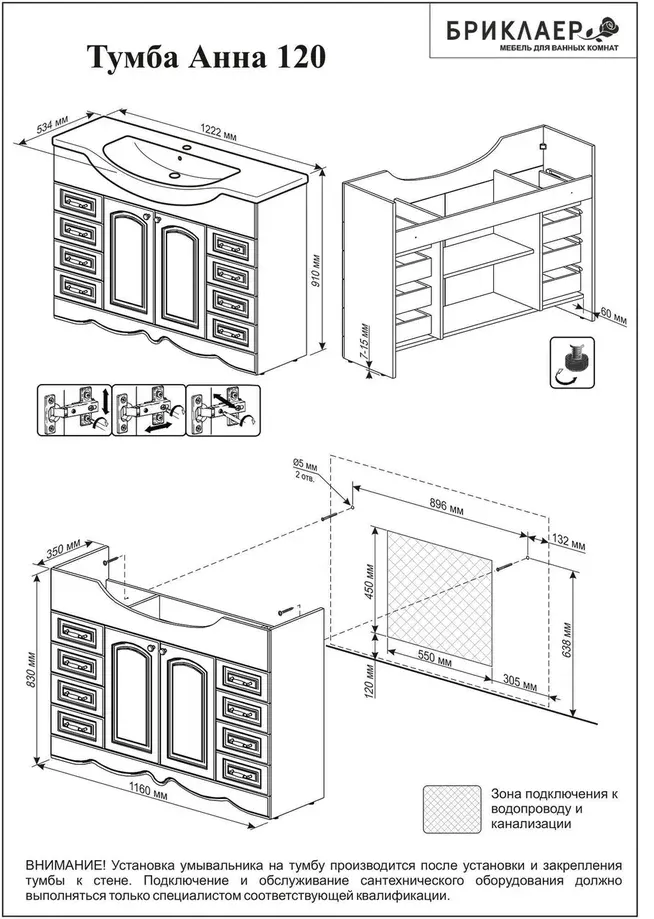 Тумба под раковину Бриклаер Анна 4627125411458 120 см белый Тумба под раковину Бриклаер Анна 4627125411458 120 см белый Казань 43120.00 {old_price} Бриклаер