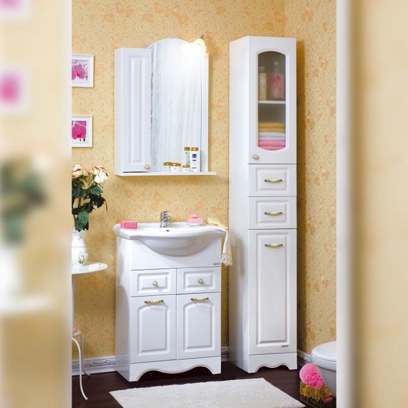Удобная система хранения позволяет размещать все необходимое для гигиенических процедур, а её продуманные размеры отлично вписываются даже в небольшие помещения. Стильные ручки и элегантные фасады придают тумбе особый шарм, а разнообразие цветовых решений позволит выбрать модель, соответствующую любому интерьеру – от классического до модерн.
