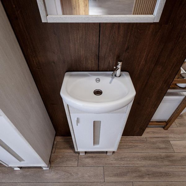 Удобная система хранения позволяет размещать все необходимое для гигиенических процедур, а её продуманные размеры отлично вписываются даже в небольшие помещения. Стильные ручки и элегантные фасады придают тумбе особый шарм, а разнообразие цветовых решений позволит выбрать модель, соответствующую любому интерьеру – от классического до модерн.