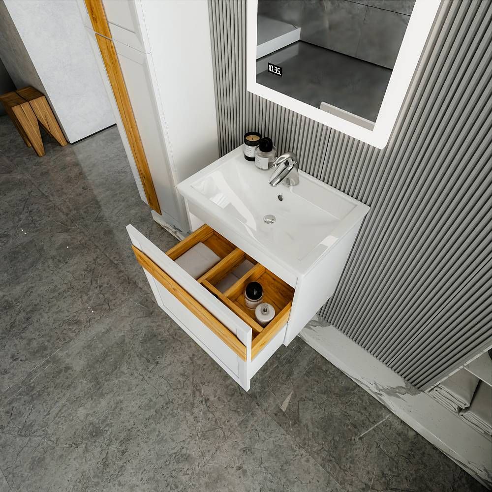 С помощью подвесной тумбы ванная комната становится не только более удобной, но и эстетически привлекательной, создавая атмосферу уюта и роскоши.