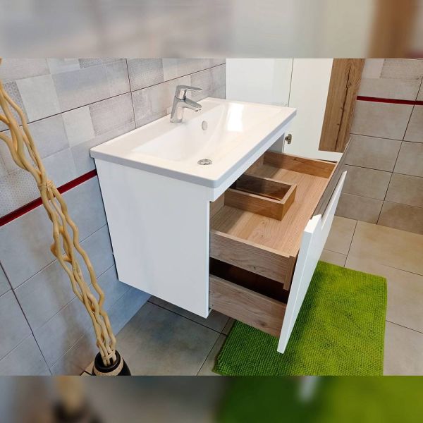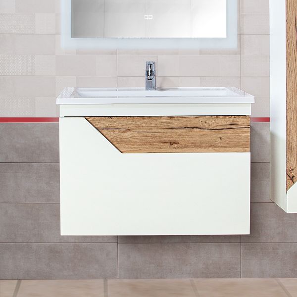 Тумба под раковину Бриклаер Брайтон 4627125415821 80 см белый/дуб купить