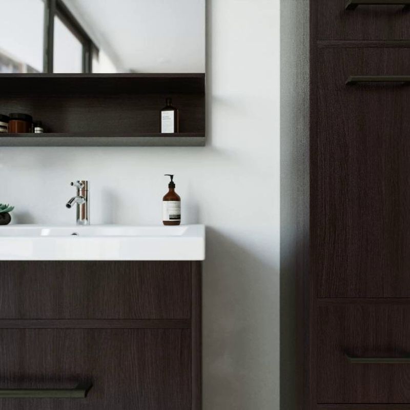 Удобная система хранения позволяет размещать все необходимое для гигиенических процедур, а её продуманные размеры отлично вписываются даже в небольшие помещения. Стильные ручки и элегантные фасады придают тумбе особый шарм, а разнообразие цветовых решений позволит выбрать модель, соответствующую любому интерьеру – от классического до модерн.