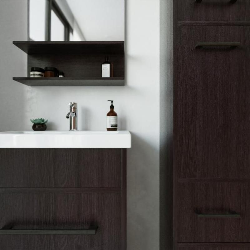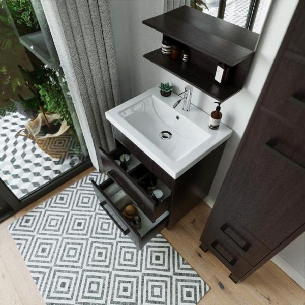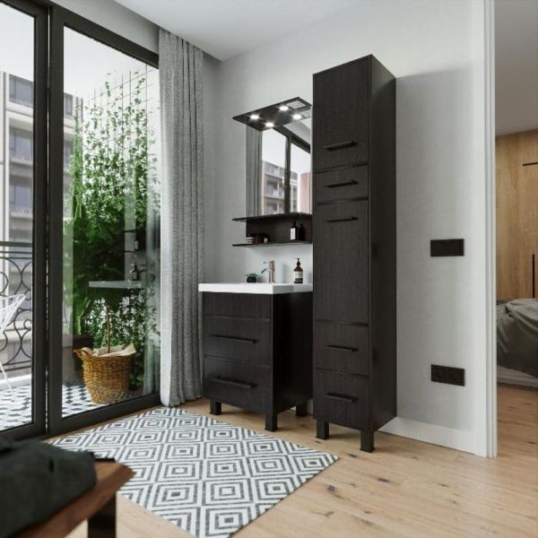 Удобная система хранения позволяет размещать все необходимое для гигиенических процедур, а её продуманные размеры отлично вписываются даже в небольшие помещения. Стильные ручки и элегантные фасады придают тумбе особый шарм, а разнообразие цветовых решений позволит выбрать модель, соответствующую любому интерьеру – от классического до модерн.