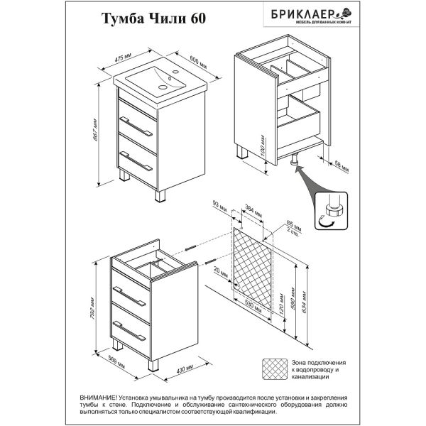 Тумба под раковину Бриклаер Чили 4627125415210 60 см цемент Тумба под раковину Бриклаер Чили 4627125415210 60 см цемент Казань 13492.00 {old_price} Бриклаер