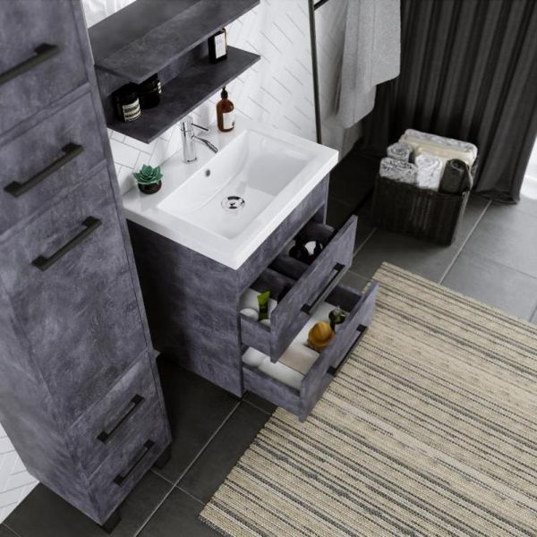 Удобная система хранения позволяет размещать все необходимое для гигиенических процедур, а её продуманные размеры отлично вписываются даже в небольшие помещения. Стильные ручки и элегантные фасады придают тумбе особый шарм, а разнообразие цветовых решений позволит выбрать модель, соответствующую любому интерьеру – от классического до модерн.
