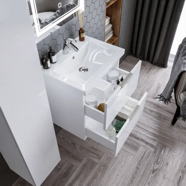 С помощью подвесной тумбы ванная комната становится не только более удобной, но и эстетически привлекательной, создавая атмосферу уюта и роскоши.