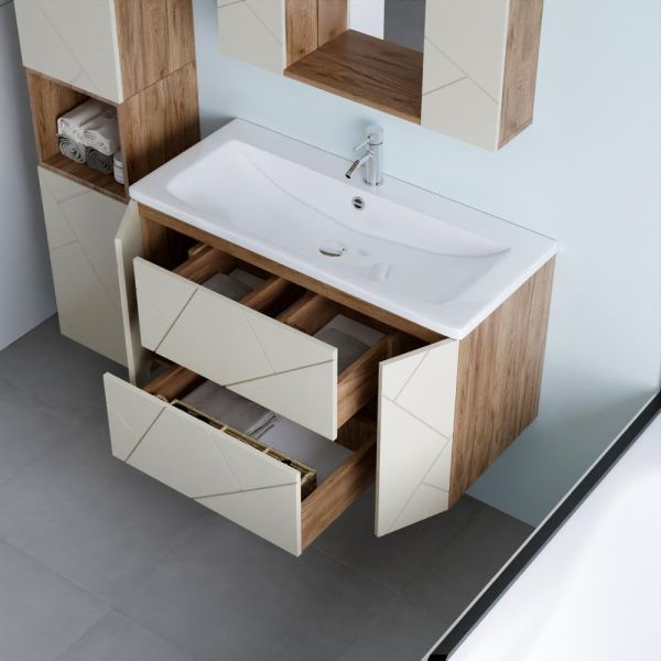 Функциональные особенности таких тумб варьируются от наличия выдвижных ящиков до встроенных систем хранения, которые помогают организовать пространство ванной комнаты. Важным аспектом является также возможность выбора различных цветовых решений и отделок, что позволяет гармонично вписать тумбу в любой интерьер – от классического до ультрасовременного.