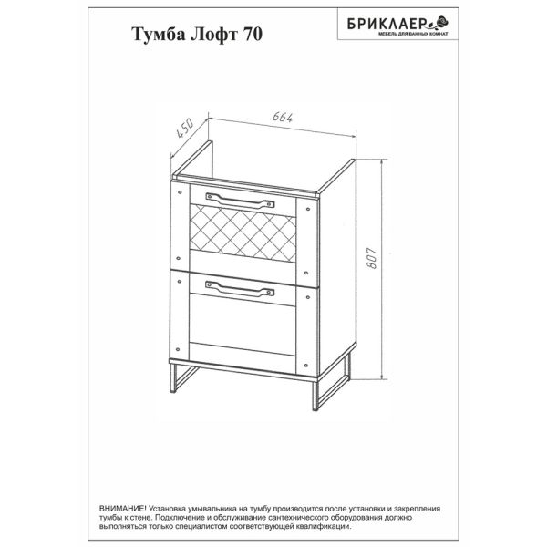 Тумба под раковину Бриклаер Лофт 4627125413407 70 см метрополитен грей купить