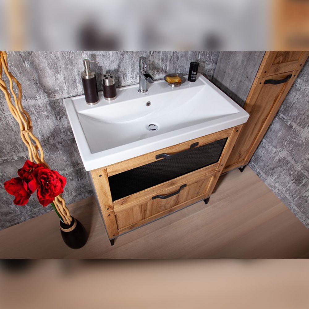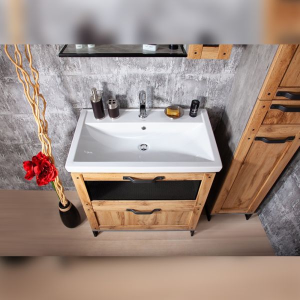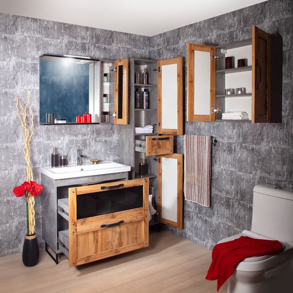 Удобная система хранения позволяет размещать все необходимое для гигиенических процедур, а её продуманные размеры отлично вписываются даже в небольшие помещения. Стильные ручки и элегантные фасады придают тумбе особый шарм, а разнообразие цветовых решений позволит выбрать модель, соответствующую любому интерьеру – от классического до модерн.