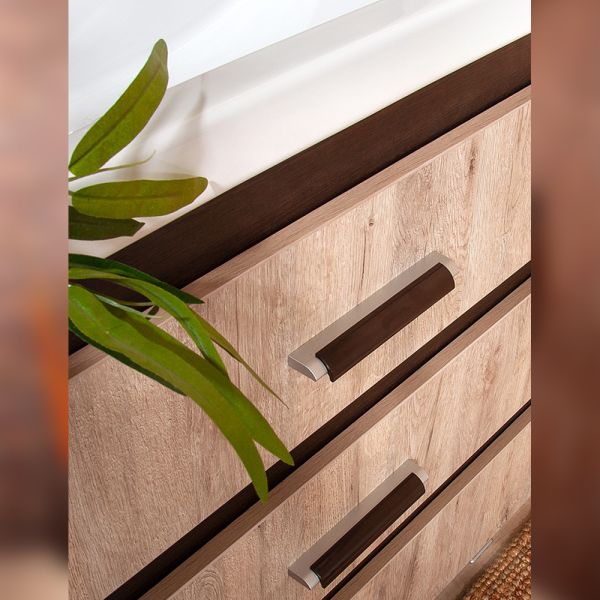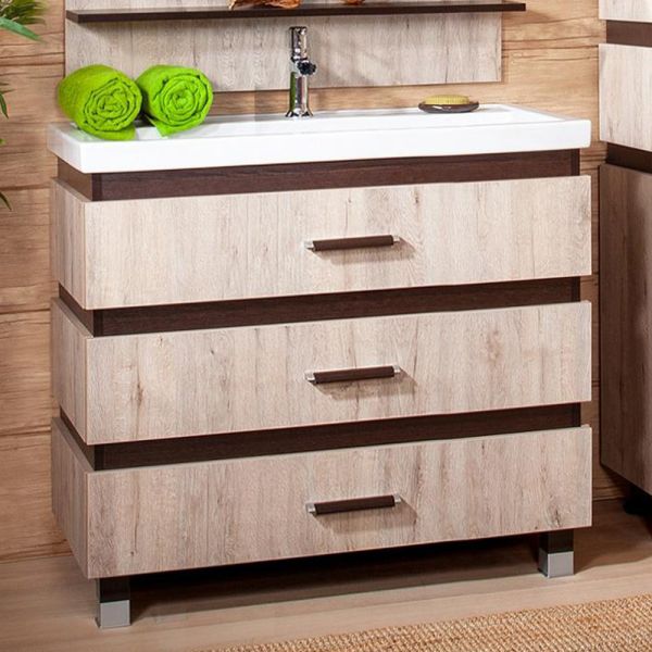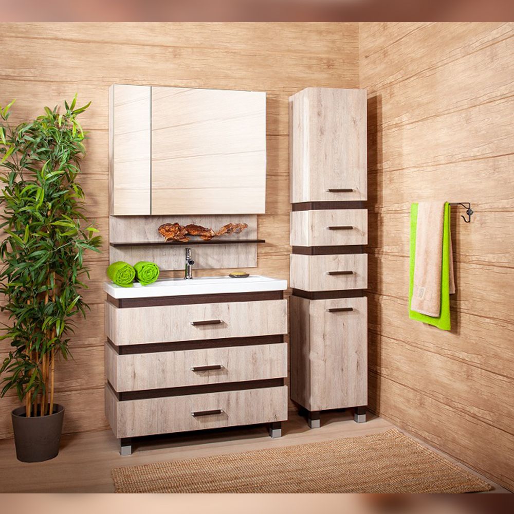 Удобная система хранения позволяет размещать все необходимое для гигиенических процедур, а её продуманные размеры отлично вписываются даже в небольшие помещения. Стильные ручки и элегантные фасады придают тумбе особый шарм, а разнообразие цветовых решений позволит выбрать модель, соответствующую любому интерьеру – от классического до модерн.
