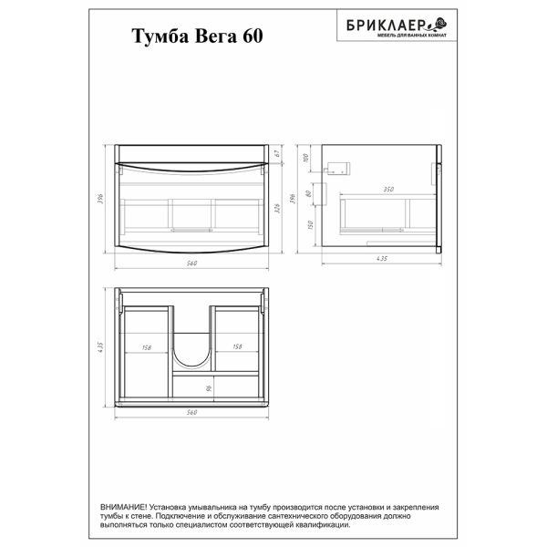 Тумба под раковину Бриклаер Вега 4627125414053 60 см белый Тумба под раковину Бриклаер Вега 4627125414053 60 см белый Казань 10513.00 {old_price} Бриклаер