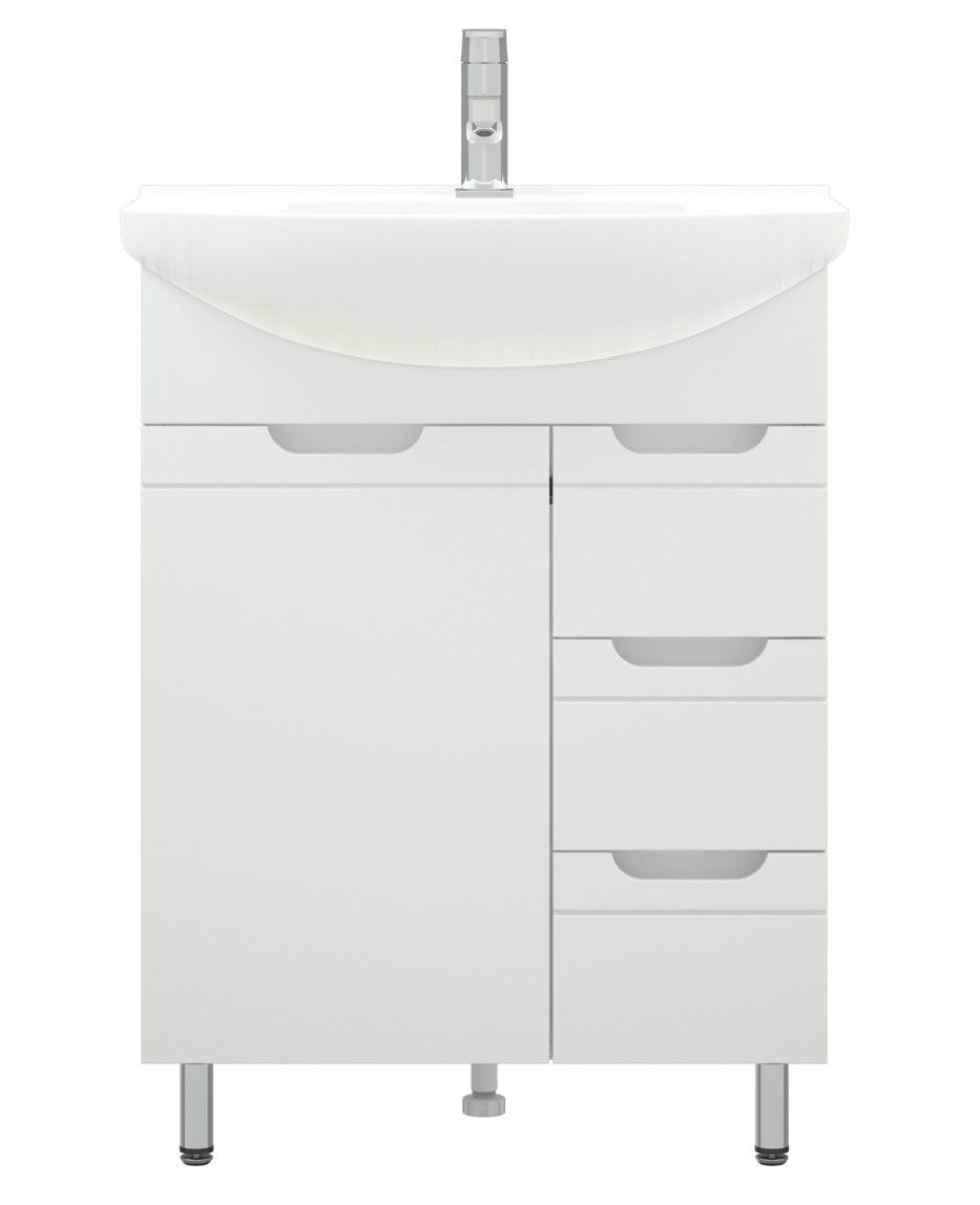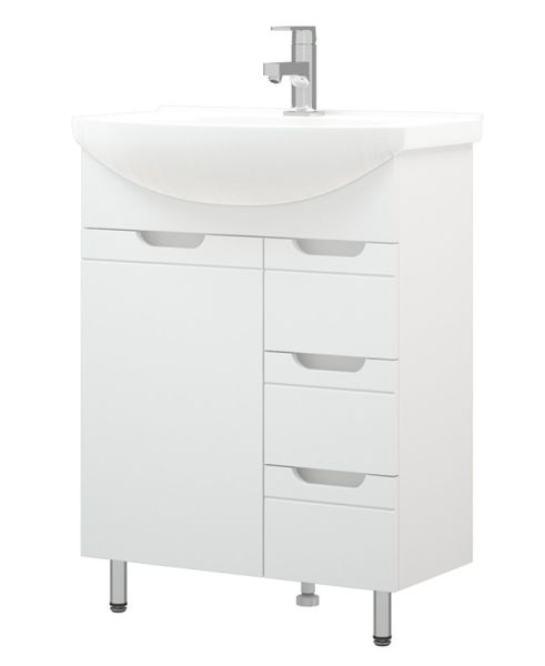 Тумба под раковину Corozo 65 Z3, 65 см, цвет белый, SD-00001509Коллекция мебели для ванных комнат "ЛЕЯ" создана для тех, кто ценит простоту форм, сочетание округлых и прямых линий, удобство эксплуатации. У мебели коллекции «ЛЕЯ» корпус выполнен из ЛДСП, фасады - из влагостойкой плиты МДФ, покрытие – пленка ПВХ. В верхней части стойки расположены полки, в нижней части - высокие боковины. Фурнитура с лицевой стороны фасадов отсутствует, вместо нее предусмотрены интегрированные ручки с декоративной полосой тонкой фрезеровки. Высота ящика по 110 мм. Тумба подходит под раковину Corozo Элеганс 65 см. Раковина приобретается отдельно.