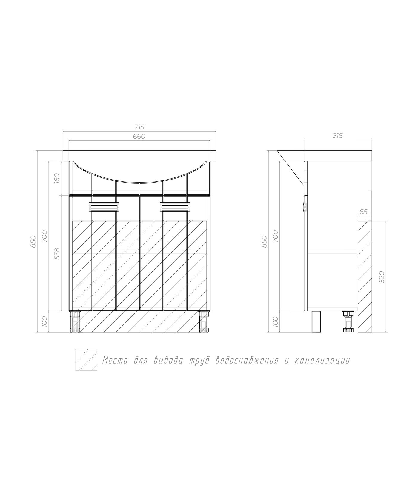 Тумба под раковину Diana 700-2-0 (Балтика) tn.DIA.BAL.70.2D купить