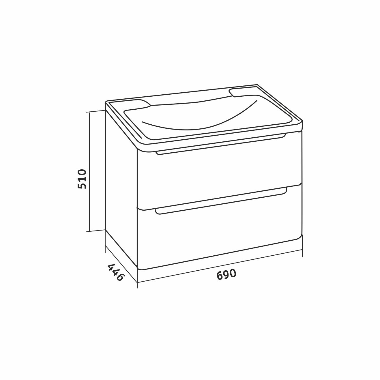 Тумба снабжена двумя ящиками, которые укомплектованы направляющими плавного закрывания, ящики предназначены для хранения различных предметов.