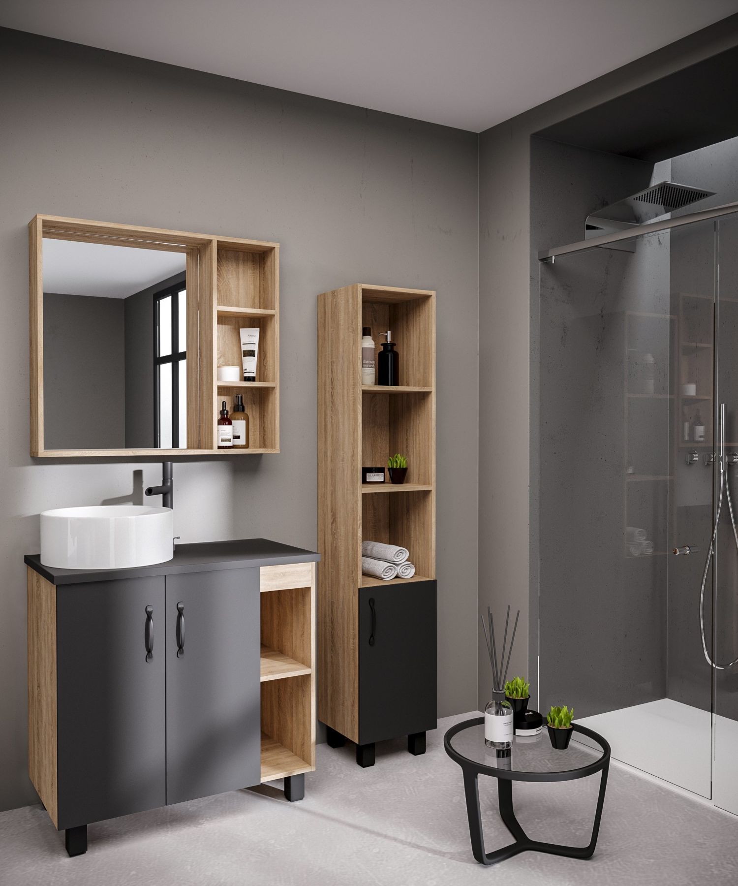 Тумба под раковину Grossman Флай 80 дуб санома/серая купить