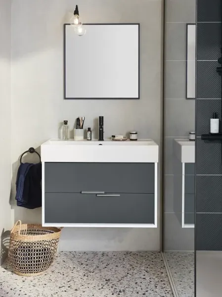 Тумба под раковину Jacob Delafon Vivienne EB1668-J5-J54, 100 см, корпус белый блестящий, фасад серый матовый, ручки хром