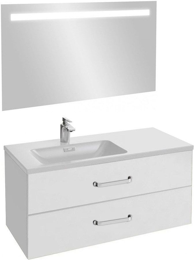 Мягкий и плавный ход ящиков с функцией Soft Close. Изогнутые ручки с покрытием цвета матовый хром.