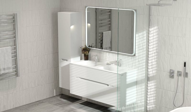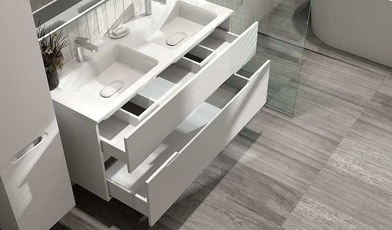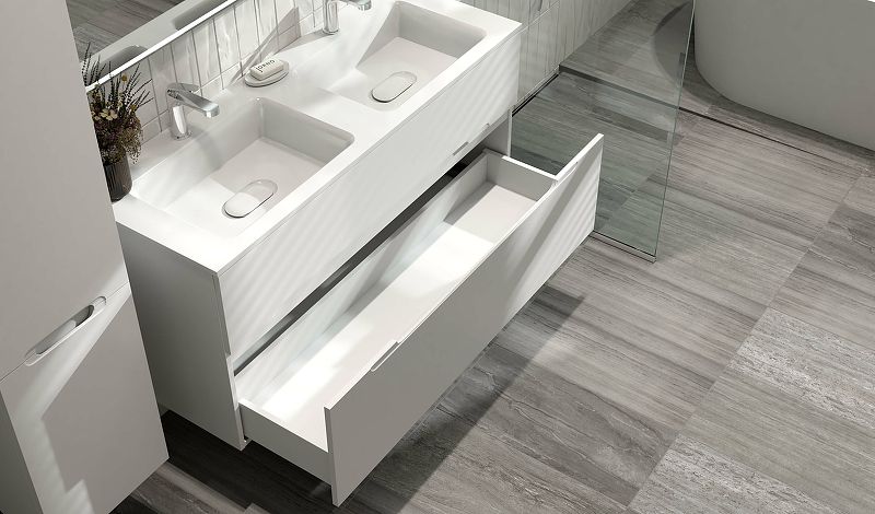 Коллекция Modul — это современное сочетание минимализма и творчества c выделенными функциональными элементами. Четкие прямые линии краев тумбы и раковины образуют форму лаконичного куба, в котором будто вырезаны ручка и раковина с округлыми краями.