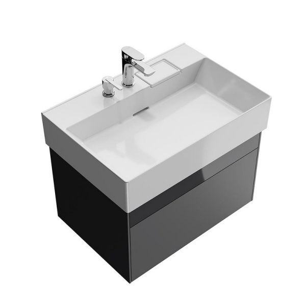Подвесная тумба Logica — это детально проработанный дизайн и вдохновляющие технологические возможности. Так, при приближении к тумбе автоматически загорается подсветка между двумя выдвижными ящиками. Дистанцию срабатывания подсветки можно настроить с помощью инструкции из комплекта поставки. Фасады и корпус выполнены из МДФ в цвете «Стальной серый»: верхний фасад — глянцевый, нижний фасад и корпус — матовые. Тумба имеет два выдвижных ящика с открытием Push to open, с внутренней отделкой «Лён Антрацит». Верхний ящик, благодаря нестандартному расположению сифона, содержит больше полезного пространства и удивляет стеклянной вставкой в основании: через такое «окно» снизу струится свет, эффектно подчёркивая содержимое. В комплектацию тумбы входят крепление, гарантийный талон, инструкция по установке, инструкция по регулировке подсветки и открытия ящиков.