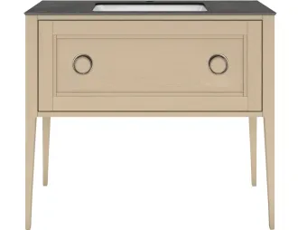 Напольная тумба с одним выдвижным и одним внутренним ящиками выполнена из массива ясеня с отделкой «открытая пора». Вместительный ящик с плавным закрыванием украшен двумя крупными ручками. Сочетается с керамическими столешницами PLAZA Classic шириной 100 см. Подходит для установки раковин с типом монтажа «накладная на столешницу» и «встраиваемая сверху».