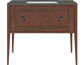 Напольная тумба с одним выдвижным и одним внутренним ящиками выполнена из массива ольхи с отделкой «закрытая пора». Вместительный ящик с плавным закрыванием украшен двумя крупными ручками. Сочетается с керамическими столешницами PLAZA Classic шириной 100 см. Подходит для установки раковин с типом монтажа «накладная на столешницу» и «встраиваемая сверху».