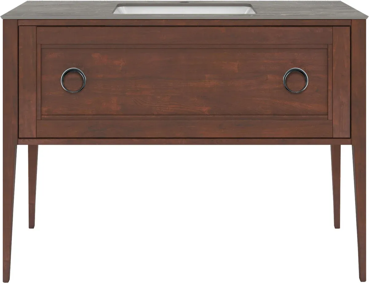 Напольная тумба с одним выдвижным и одним внутренним ящиками выполнена из массива ольхи с отделкой «закрытая пора». Вместительный ящик с плавным закрыванием украшен двумя крупными ручками. Сочетается с керамическими столешницами PLAZA Classic шириной 120 см. Подходит для установки раковин с типом монтажа «накладная на столешницу» и «встраиваемая сверху».