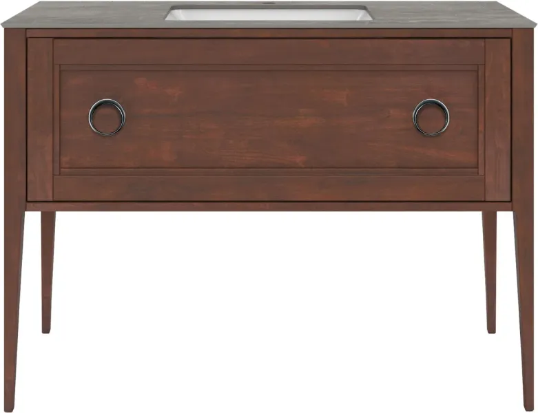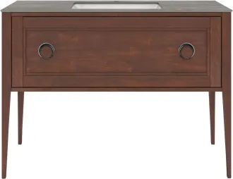 Напольная тумба с одним выдвижным ящиком выполнена из массива ольхи с отделкой «закрытая пора». Вместительный ящик с плавным закрыванием украшен двумя крупными ручками. Сочетается с керамическими столешницами PLAZA Classic шириной 120 см. Подходит для установки раковин с типом монтажа «встраиваемая снизу».