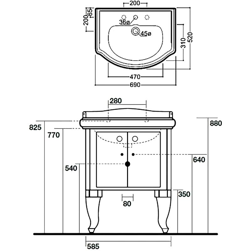 В комплекте поставки:Тумба под раковину.