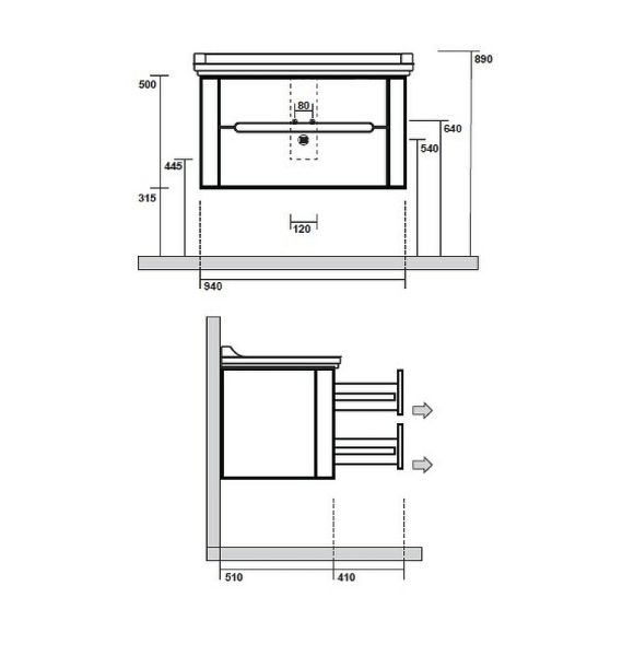 Габариты корпуса тумбы (ВхШхГ): 500х740х510 мм.