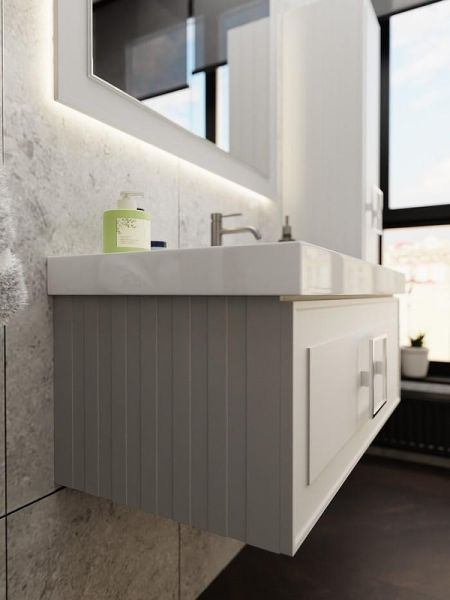 С мебелью коллекции Cubo решить задачу будет проще. Матовые фасады подвесных тумб и столешницы в различных цветовых гаммах помогут даже самому взыскательному покупателю создать индивидуальный интерьер. Изящные и утонченные фрезерованные фасады и боковины тумб станут украшением любой ванной комнаты. К данной тумбе необходимо выбрать один из трех цветов ручки (FNC-04-CUB-B-168- белая/FNC-04-CUB-N-168 - черная/FNC-04-CUB-C-168 - хром), ручка включена в стоимость тумбы. Возможна установка мебельной раковины или любой раковины-чаши со столешницей.