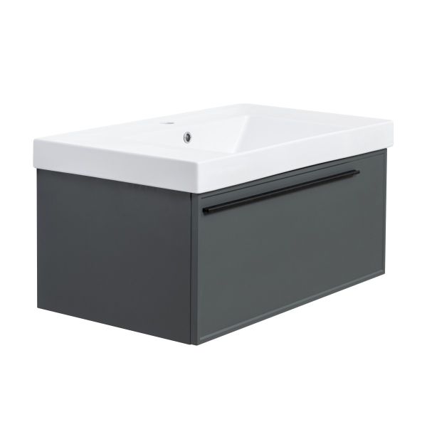 Тумба под раковину La Fenice Cubo FNC-01-ELB-B-80 77.6 смПодвесная тумба La Fenice Elba FNC-01-ELB-G-80 обладает рядом неоспоримых преимуществ. Тумбу можно оснастить встраиваемой раковиной (арт. CU.NN.80), либо же приобрести столешницу в подходящем цветовом решении (арт. FNC-03-PL01-80, FNC-03-VS03-80) и установить на неё раковину-чашу. За счет входящего в комплект сифона Prevex, тумба обладает полноценным ящиком для хранения (без выреза). Ящик выполнен в фантазийной цветовой гамме "Лён антрацит". Тумба оснащена скрытыми доводчиками плавного закрывания частичного выдвижения Samet (Турция) и подвесным регулируемым механизмом Camar (Италия). Фасад и корпус тумбы покрыты краской и матовым лаком, что является надёжной защитой от влаги. Прекрасным и функциональным дополнением к тумбе станет пенал La Fenice Elba серо-зеленого цвета FNC-05-ELB-G-30