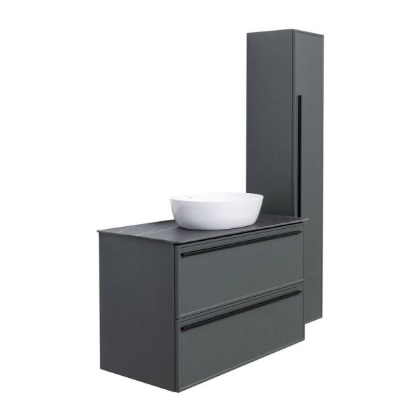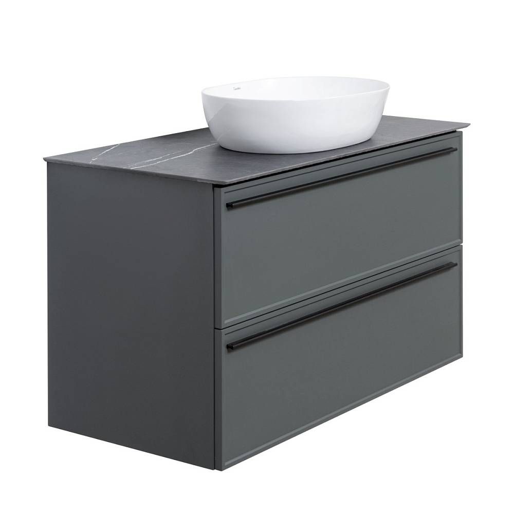 Тумба под раковину La Fenice Elba FNC-01-ELB-G-100-2 97.6 смПодвесная тумба La Fenice Elba TWIN FNC-01-ELB-G-100-2 обладает рядом неоспоримых преимуществ. Тумбу можно оснастить встраиваемой раковиной (арт.CU.NN.100), либо же приобрести столешницу в подходящем цветовом решении (арт. FNC-03-PL01-100, FNC-03-VS03-100) и установить на неё раковину-чашу. За счет входящего в комплект сифона Prevex, тумба обладает полноценными ящиками для хранения (без выреза). Ящики выполнены в фантазийной цветовой гамме "Лён антрацит". Тумба оснащена скрытыми доводчиками плавного закрывания частичного выдвижения Samet (Турция) и подвесным регулируемым механизмом Camar (Италия). Фасад и корпус тумбы покрыты краской и матовым лаком, что является надёжной защитой от влаги. Прекрасным и функциональным дополнением к тумбе станет пенал La Fenice Elba серо-зеленого цвета FNC-05-ELB-G-30