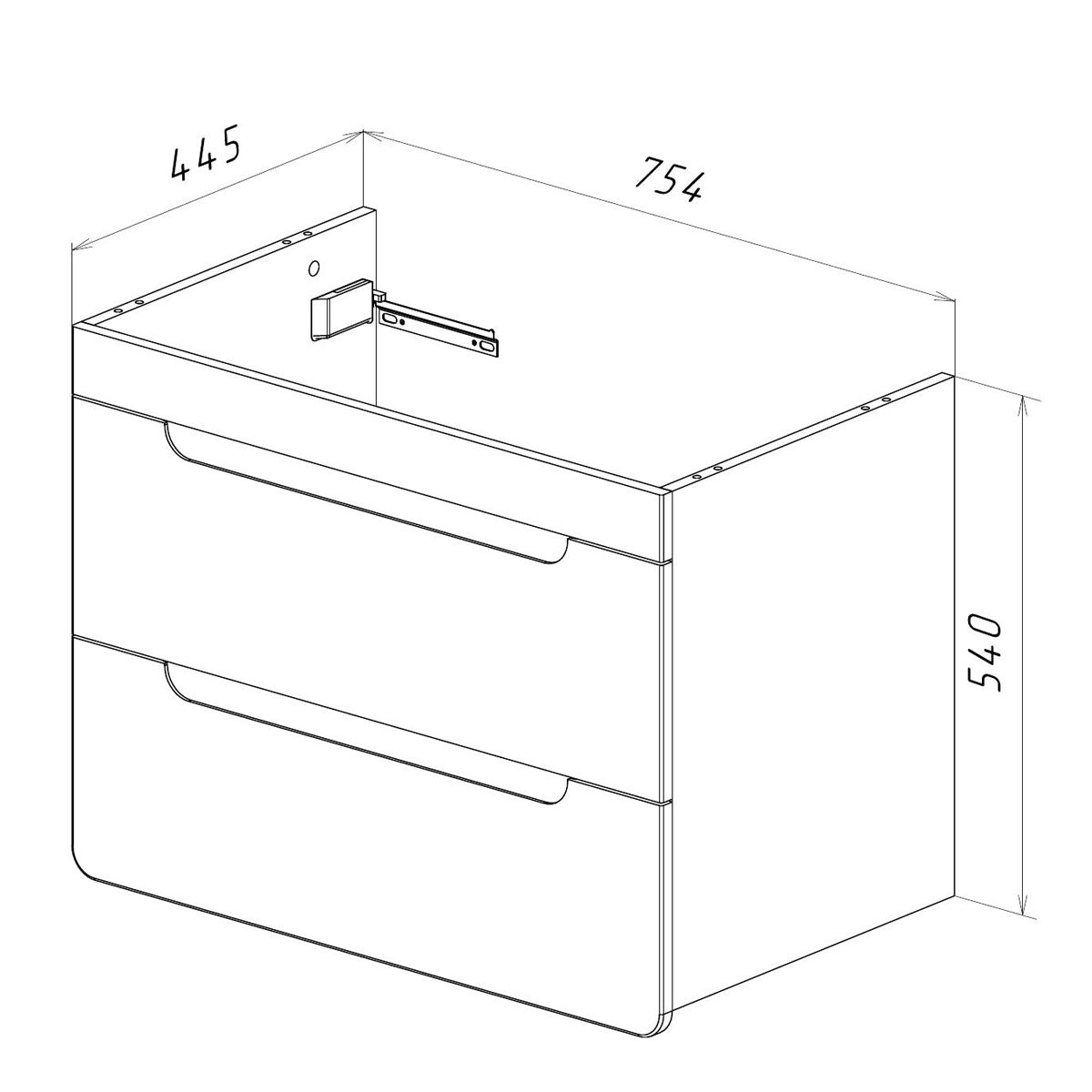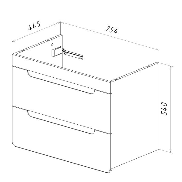 • Габариты без раковины (ШГВ): 754х445х540 мм;