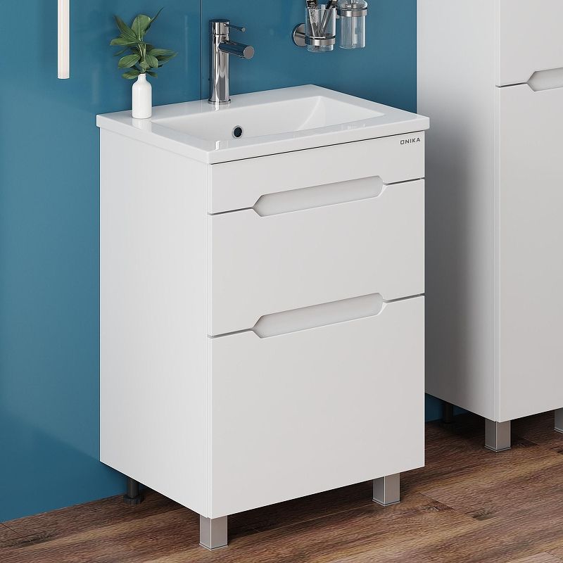 Напольная тумба для ванной комнаты Onika Айленд 60 сочетает в себе стильный минималистичный дизайн, белую глянцевую поверхность и высочайшее качество исполнения.