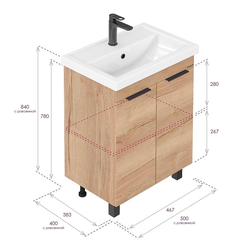 Тумба под раковину напольная Onika Легран 105040 50 см дуб галифакс купить