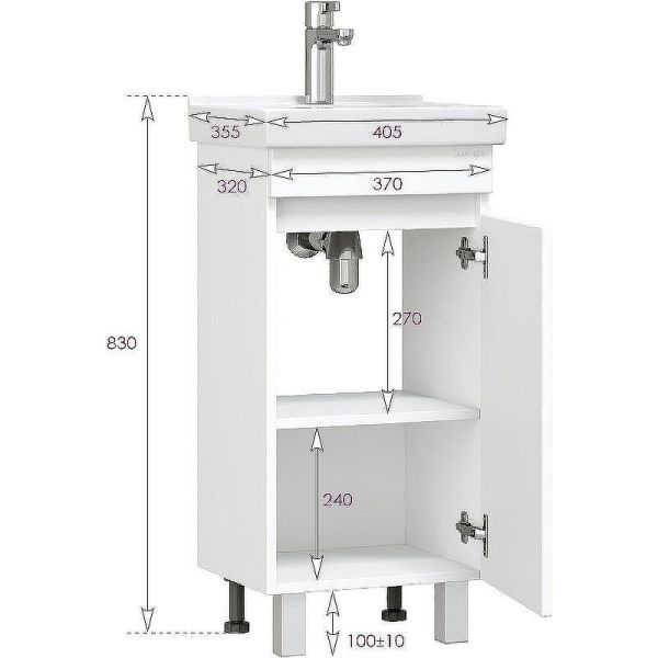Размеры тумбы без учета раковины и ножек 37x32x68 см.