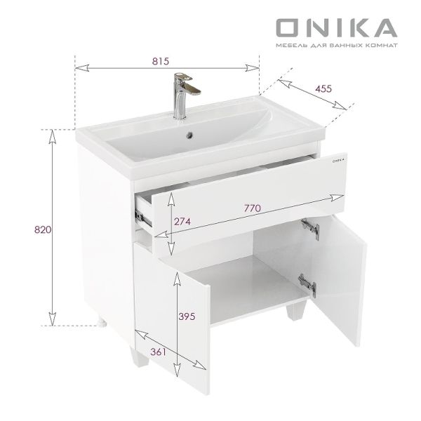 Тумба под раковину напольная Onika Стрим 108059 80 см белый купить