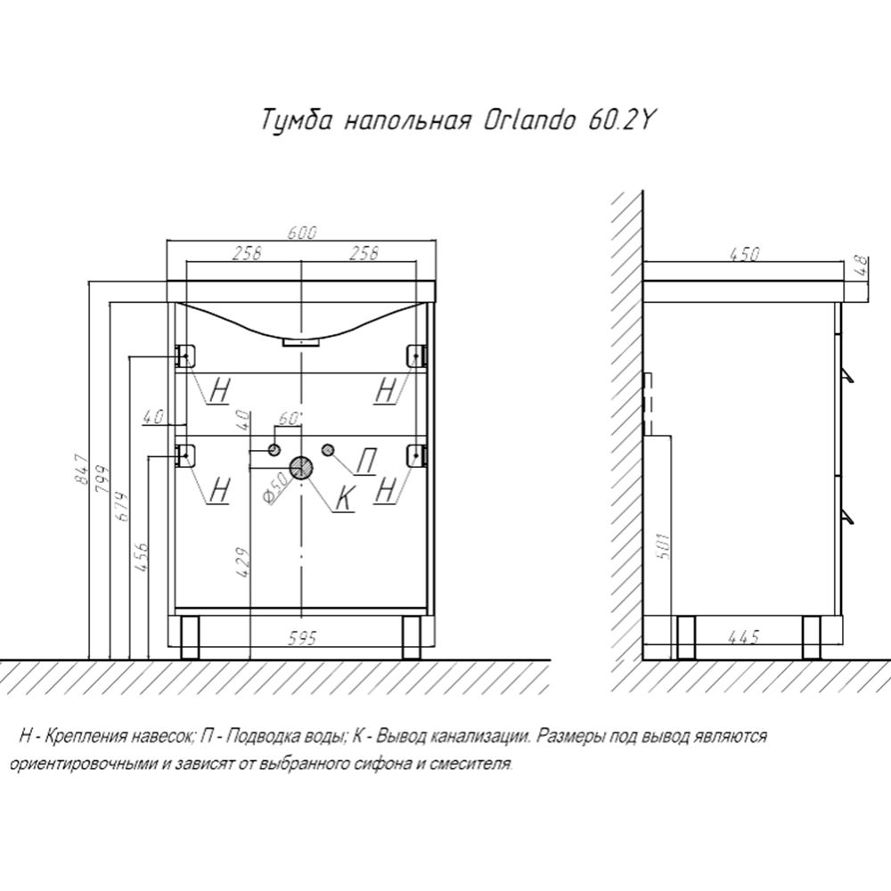 Тумба под раковину напольная Velvex Orlando tn.ORL.CLA.60.2Y белый матовый, 60 см купить