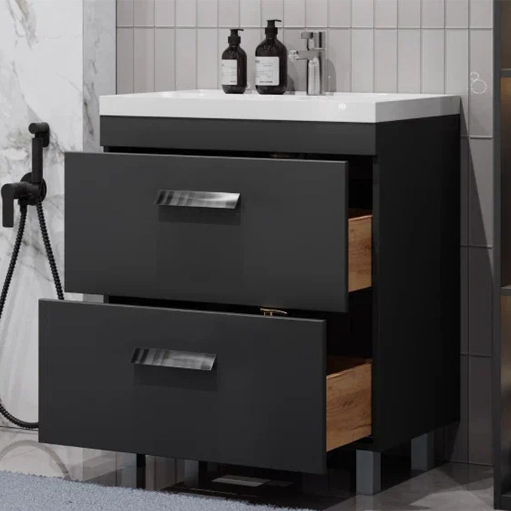 Тумба под раковину напольная Velvex Orlando tn.ORL.CLA.70.2Y графит, 70 см: 2 выдвижных ящика с механизмом плавного закрывания.