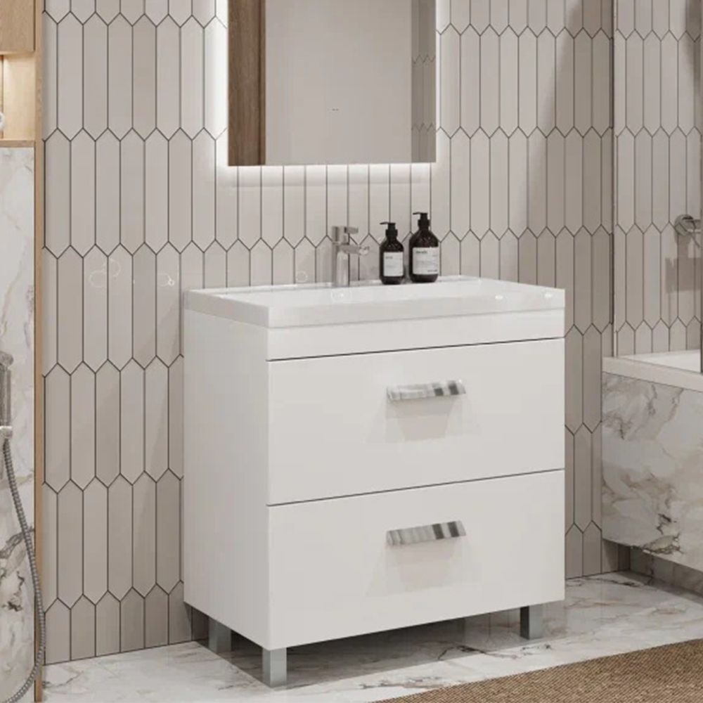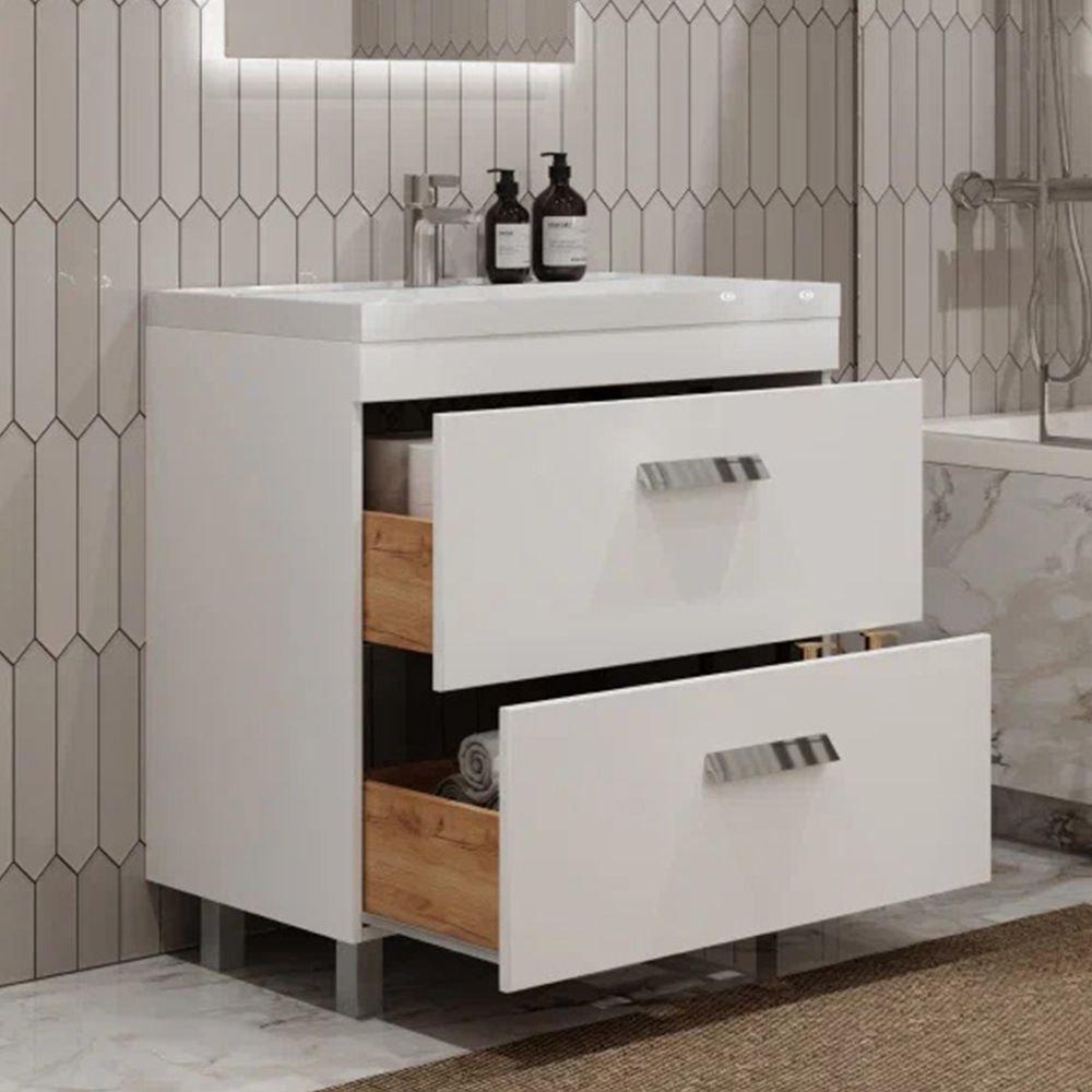 Тумба под раковину напольная Velvex Orlando tn.ORL.CLA.80.2Y белый матовый, 80 см: 2 выдвижных ящика с механизмом плавного закрывания.