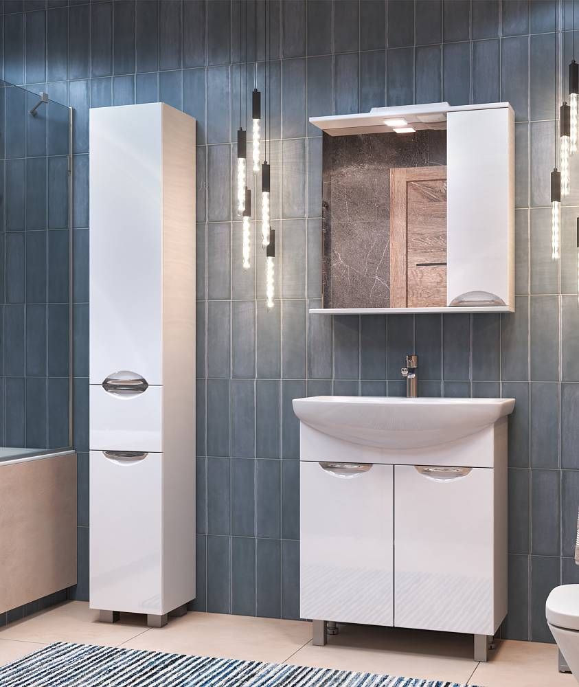 2 дверцы; 1 полка ЛДСП; ручка врезная металлическая хромированная; опоры квадратные регулируемыеМатериал корпуса: влагостойкая ЛДСПМатериал фасадов: ЛМДФПокрытие: пленка ПВХДверцы: петли с механизмом плавного закрывания.