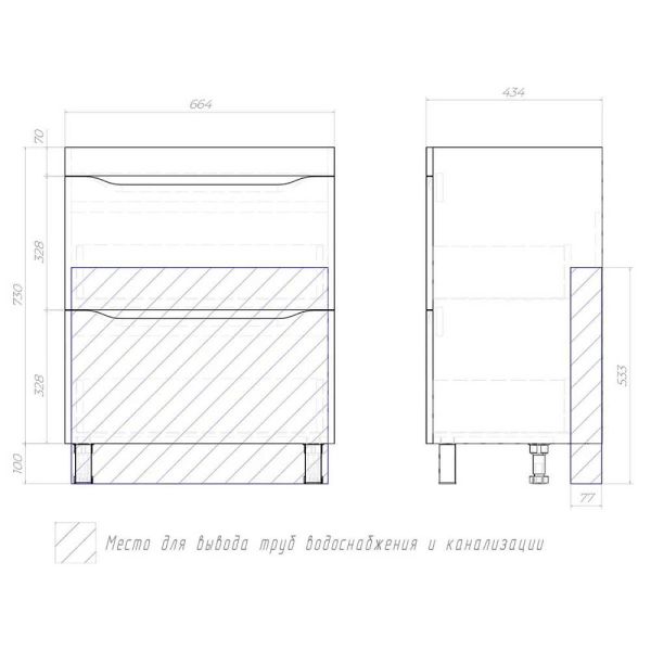 Тумба под раковину напольная VIGO Grani 202, 70 см. Гарантийный срок 2 года. Монтаж: напольный. Доводчик: нет. Нажимной механизм: нет.