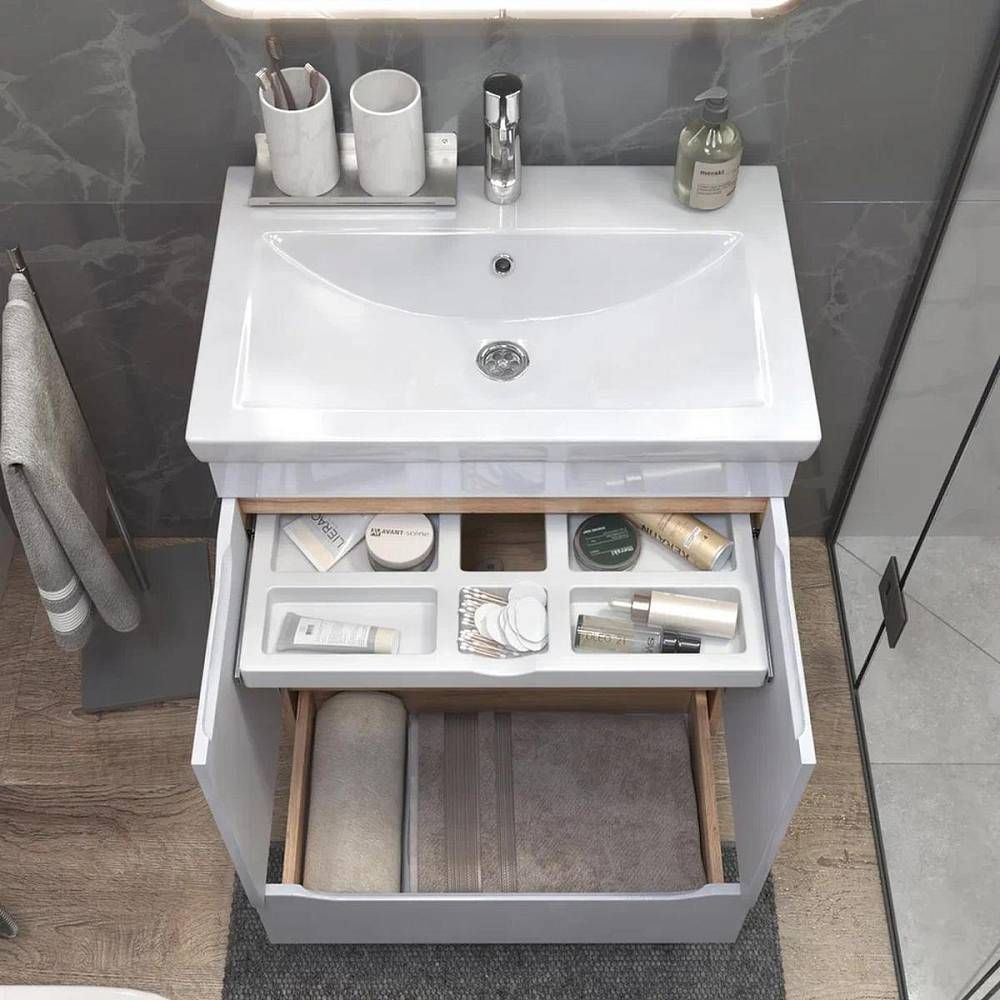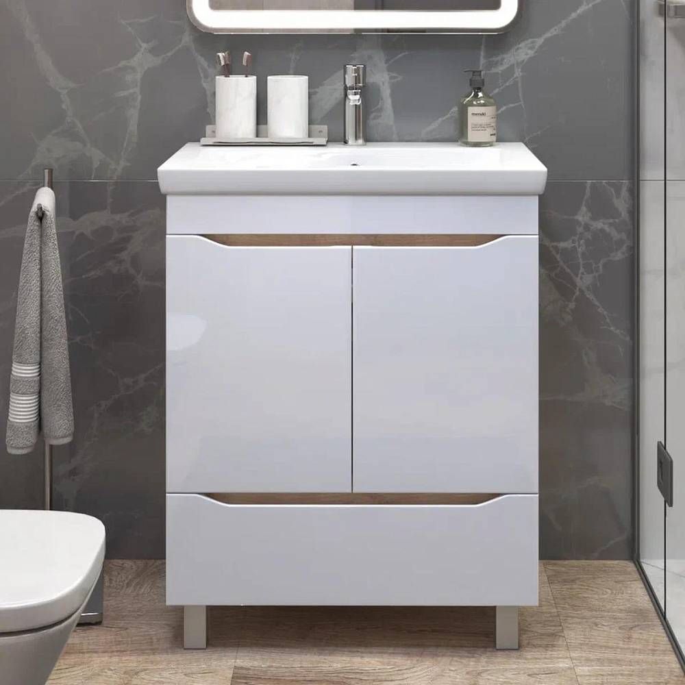 Тумба под раковину напольная VIGO Grani 285 дуб золотой, 70 см. Гарантийный срок 2 года. Монтаж: напольный. Доводчик: да. Нажимной механизм: нет.