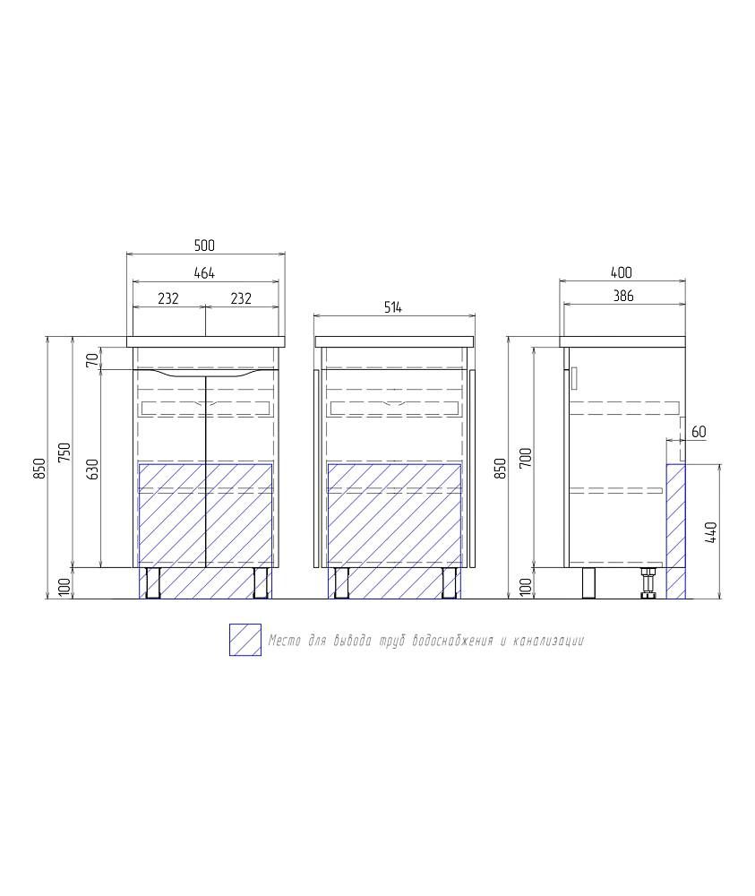 2 дверцы, 1 полка ЛДСП; органайзер для мелочей; опоры квадратные регулируемые; размещение: напольное