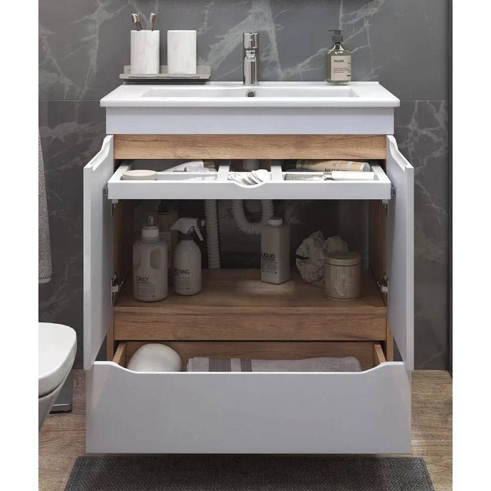 Тумба под раковину напольная VIGO Grani tn.GRI.OSK.75.2D.1Y дуб золотой, 75 см. Гарантийный срок 2 года. Монтаж: напольный. Доводчик: да. Нажимной механизм: нет.