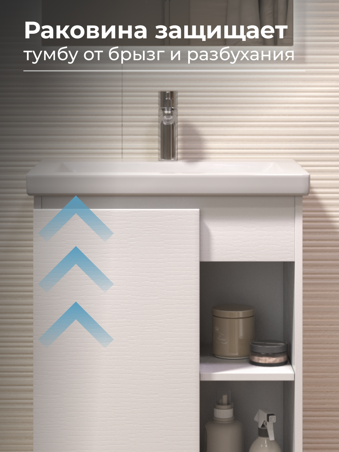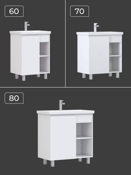 Тумба Milos 60, напольная, 1 дверца, белая (под раковину Como 60). Оснащение: 1 дверца, петли с механизмом доводчика, 2 полки ЛДСП, 4 опоры квадратные регулируемые. Колекция VIGO MILOS: петли с доводчиком, полки из влагостойкой ЛДСП, толщина 16 мм, интегрированные ручки, декор материала с имитацией под дерево.