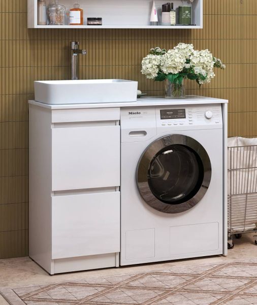 Специальный сифон Vigo в комплекте.Материал корпуса: влагостойкая ЛДСПМатериал фасада: ЛМДФПокрытие фасада: пленка ПВХОтсутствие лицевой фурнитуры – интегрированная ручка.В комплект поставки входит только тумба, столешница приобретается отдельно!